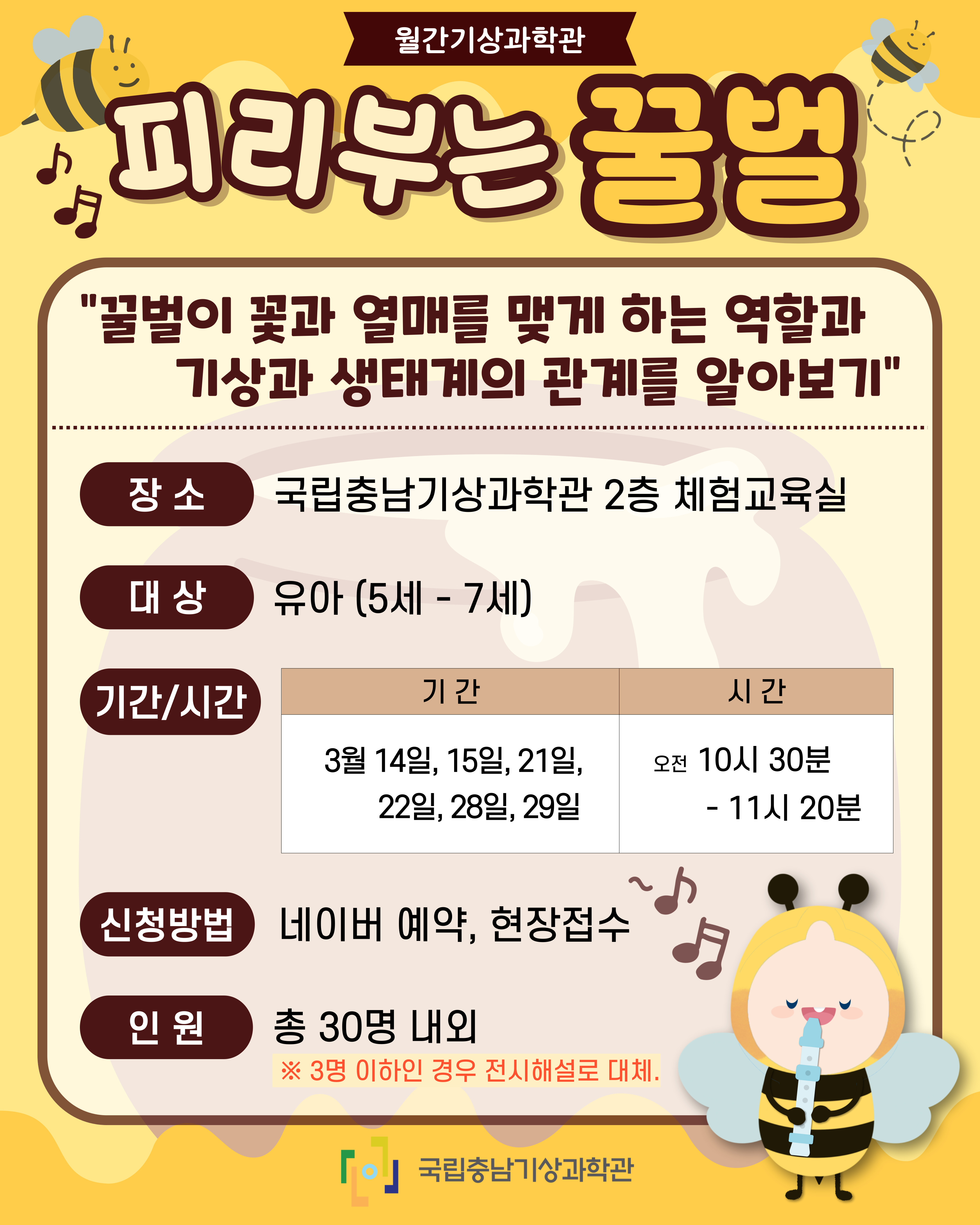 월간 기상과학관 <피리부는 꿀벌> 프로그램 안내입니다