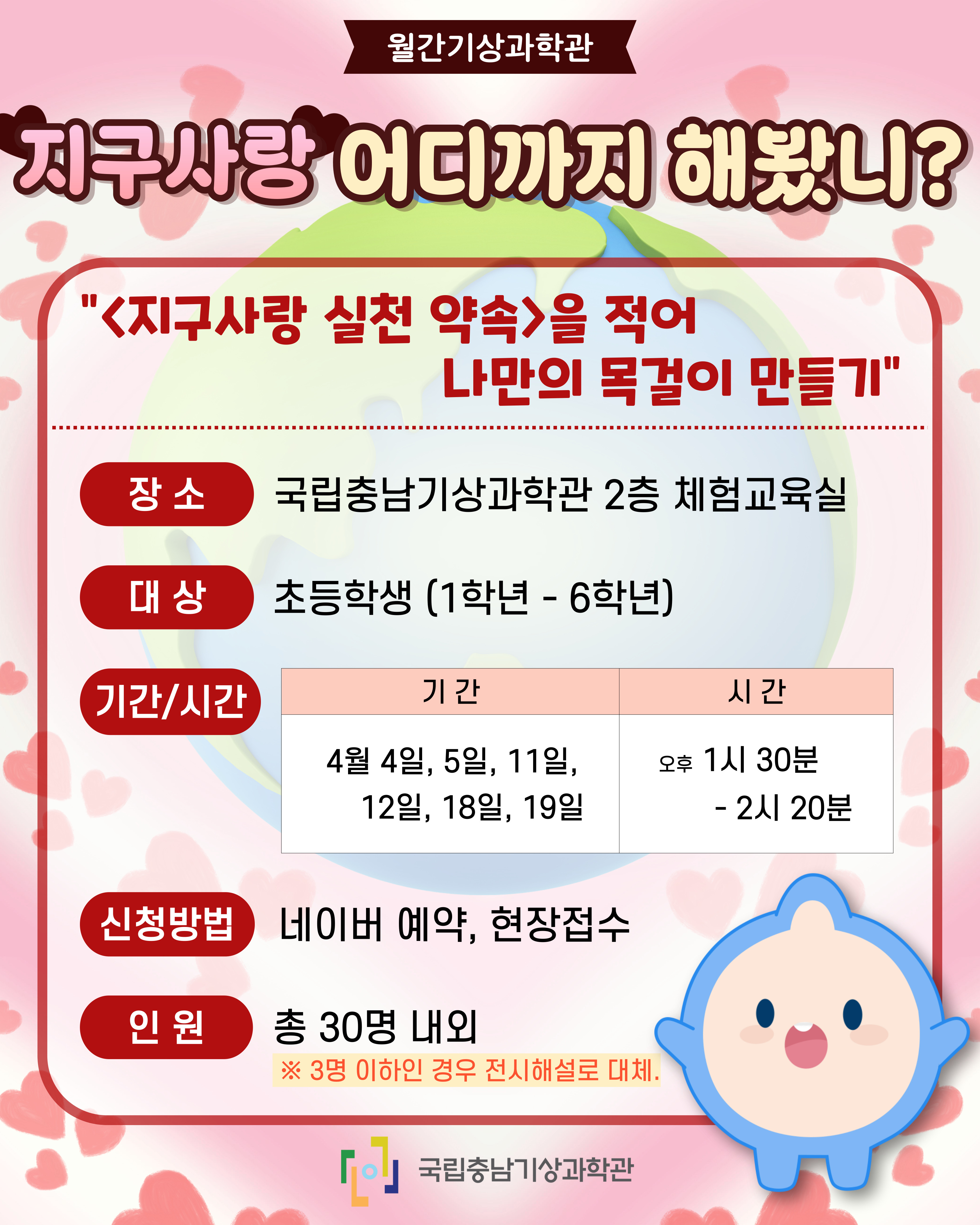 월간 기상과학관 <지구사랑 어디까지 해봤니?> 프로그램 안내입니다