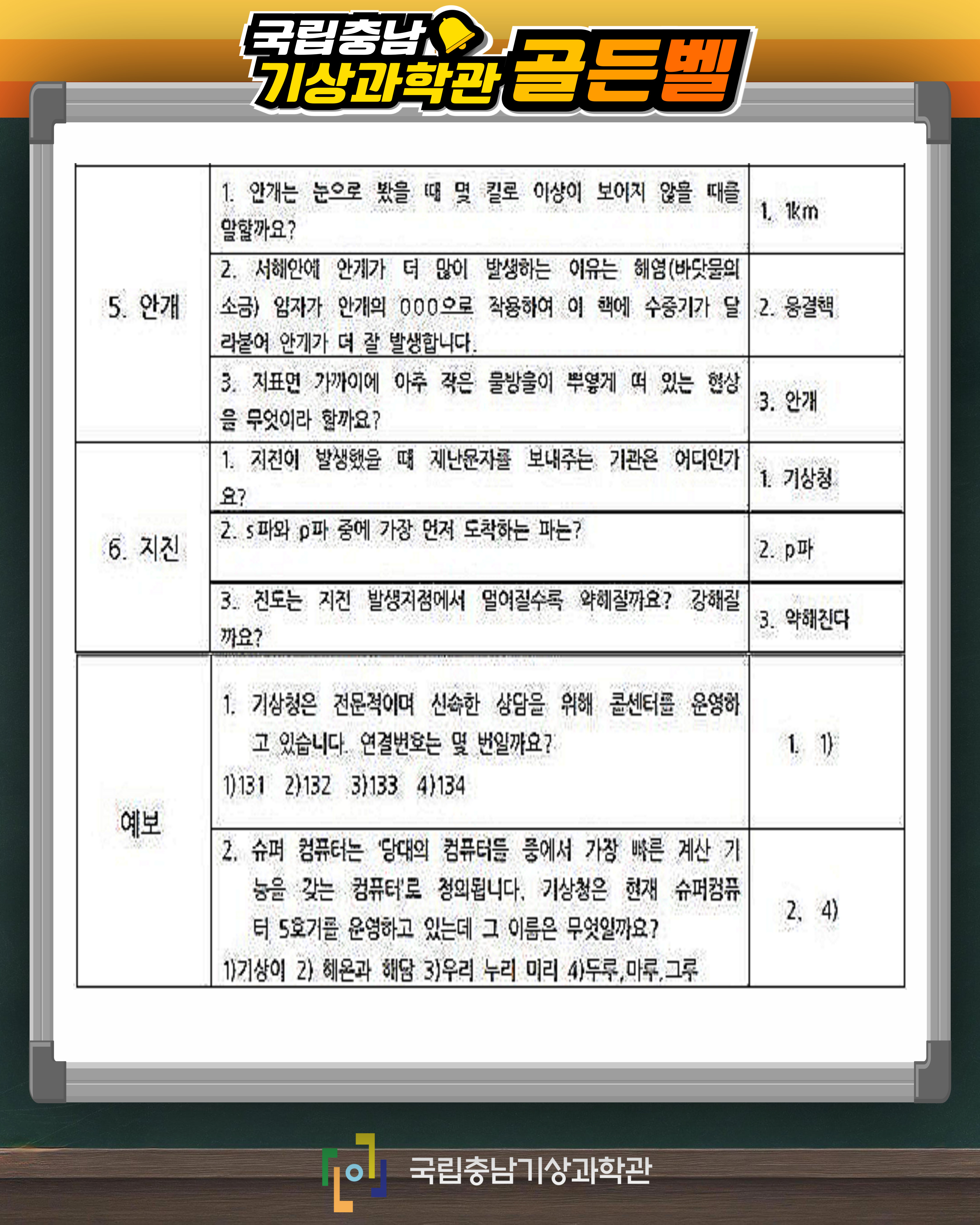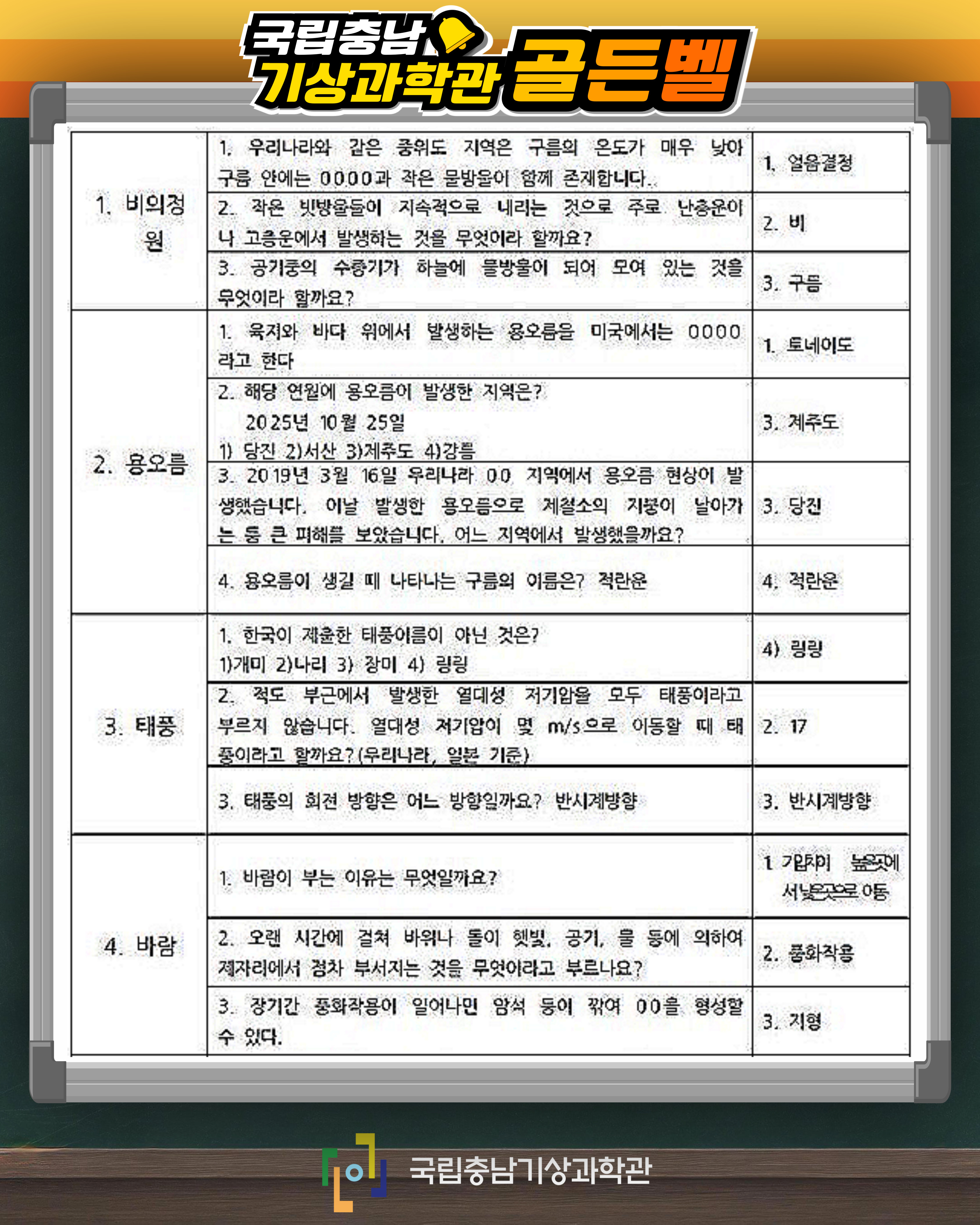 국립충남기상과학관 골든벨 예상문제 (초등 고학년)
