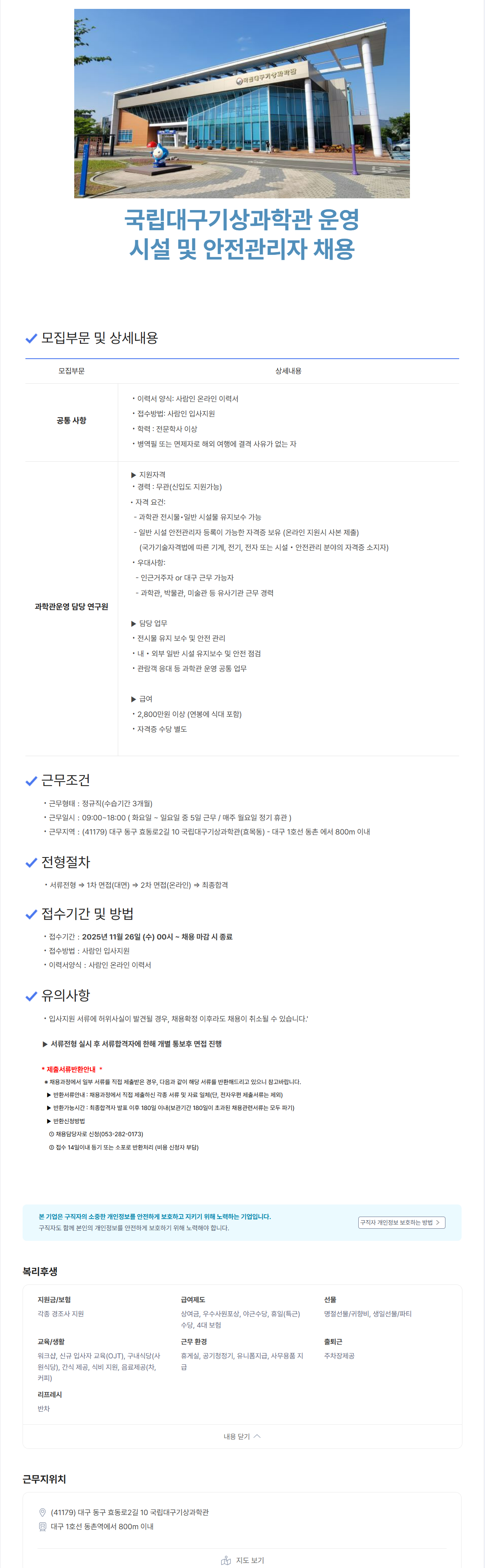 입사 지원 접수 및 자세한 내용은 아래 사람인 참조