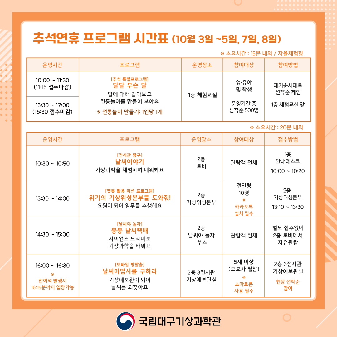 추석 · 한글날 특별 프로그램 운영으로 정규 프로그램의 운영이 변동됩니다.