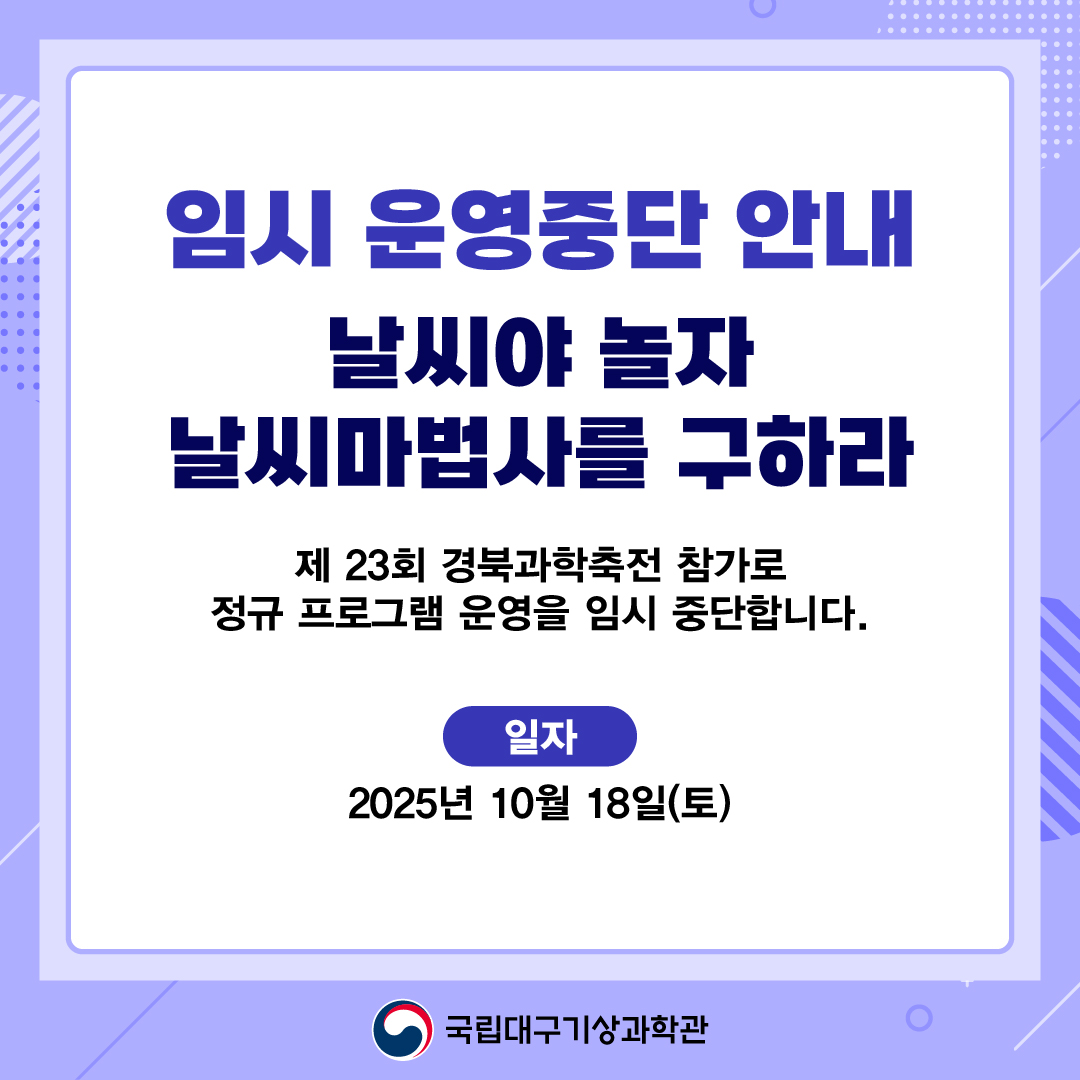 [날씨야놀자].[날씨마법사를 구하라] 임시 운영중단 안내