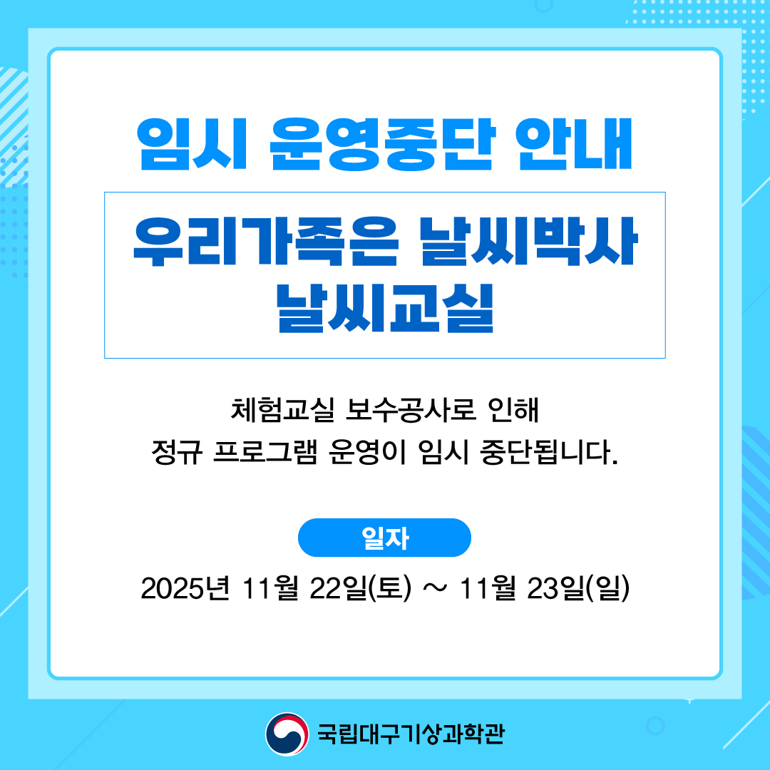 우리가족은 날씨박사, 날씨교실 임시운영 중단 안내