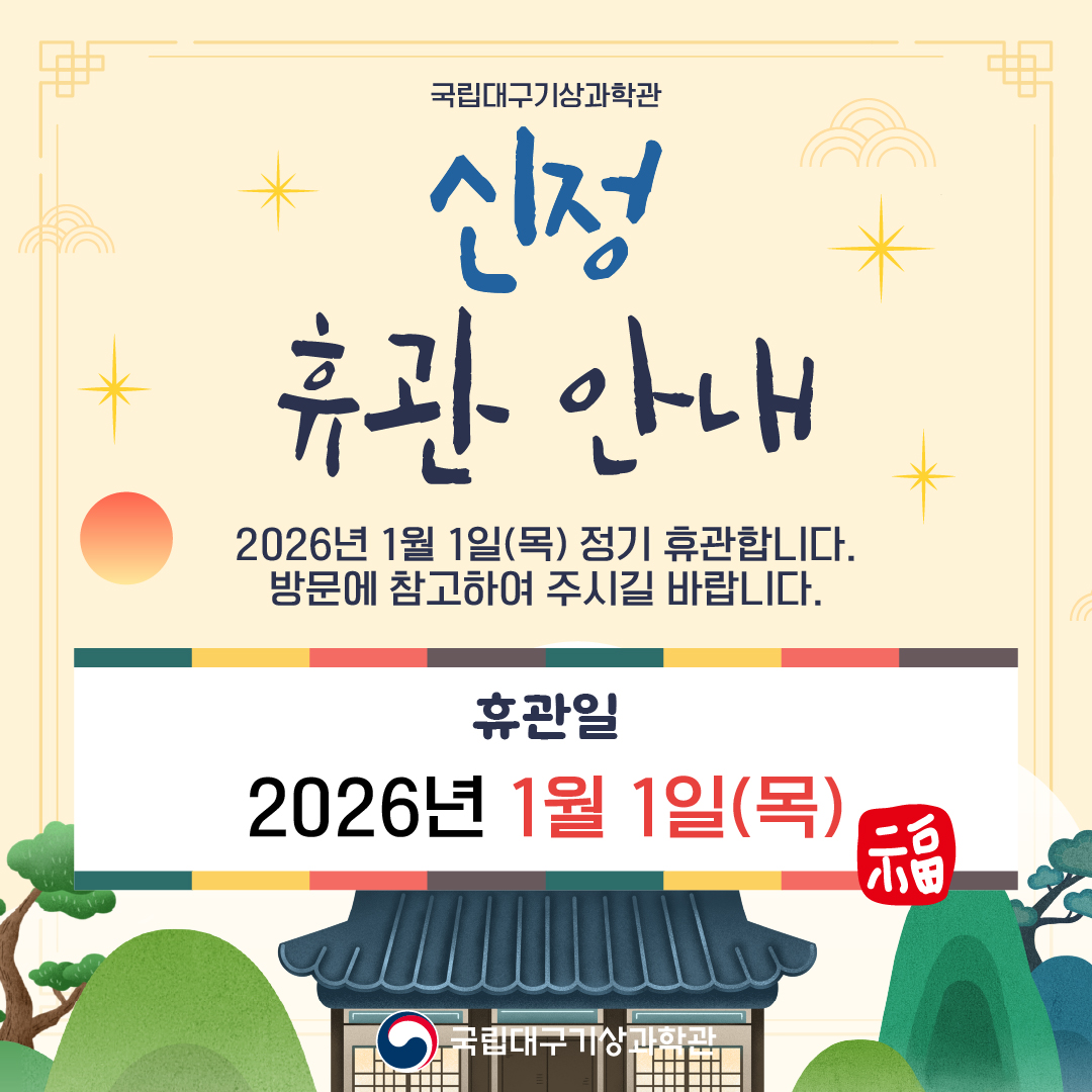 국립대구기상과학관 2026년 1월 1일(목) 휴관 안내