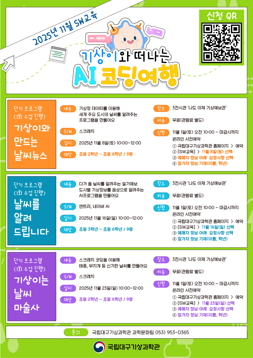 2025년 11월 SW교육 프로그램 [기상이와 떠나는 AI코딩 여행] 안내