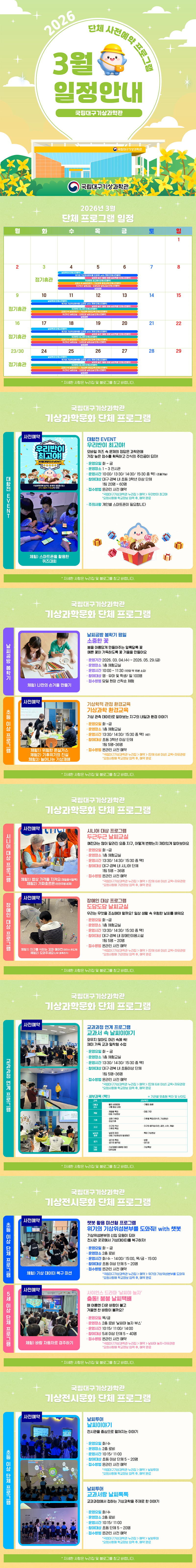 국립대구기상과학관 3월 단체프로그램 일정 안내