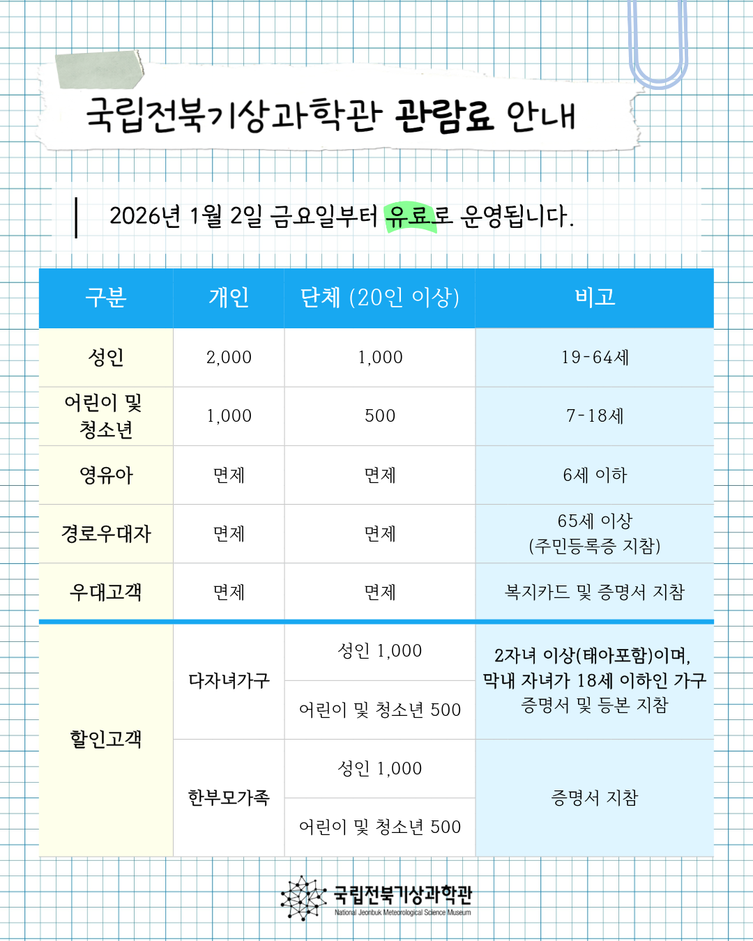 2026년 1월 2일(금)부터 다시 유료 운영으로 변경됩니다.