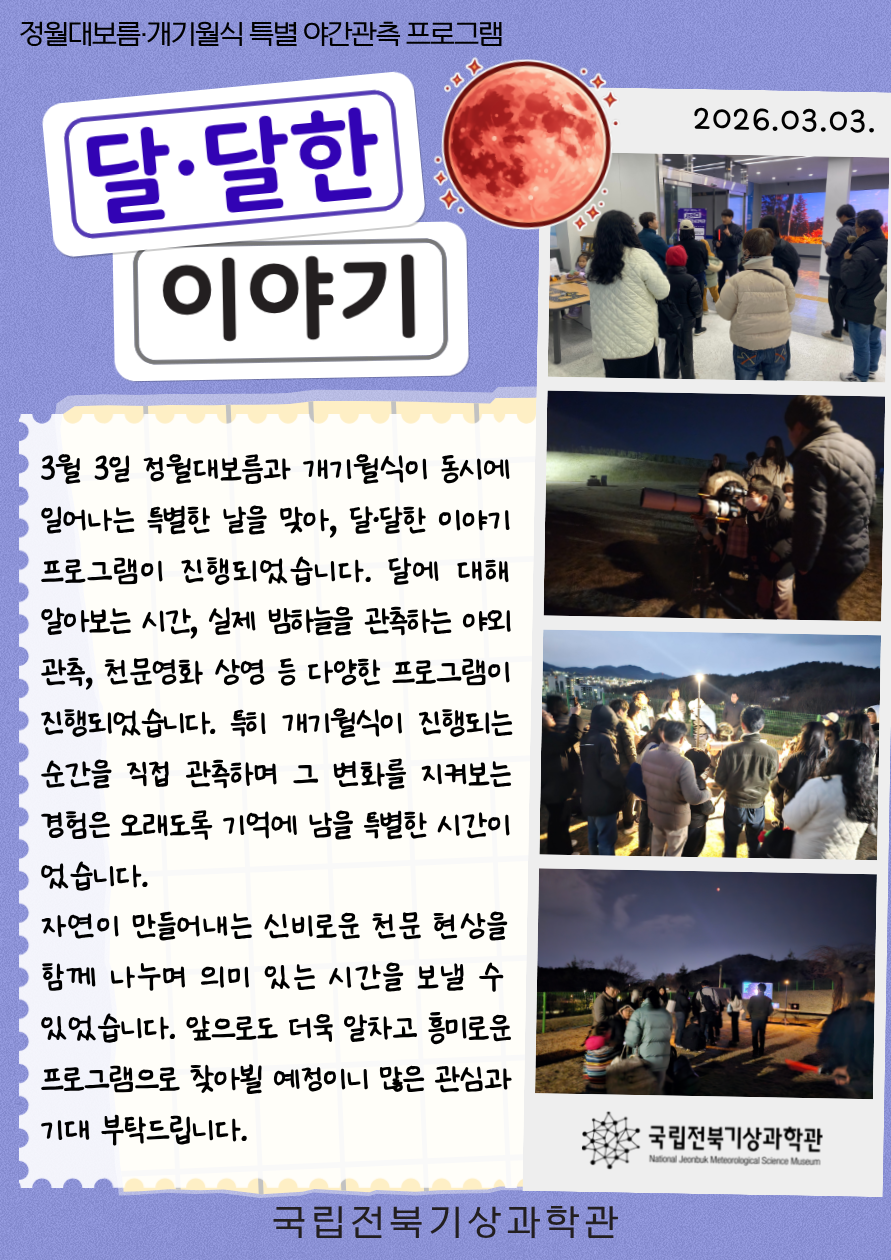26 정월대보름·개기월식 특별 야간관측 프로그램 달달한이야기