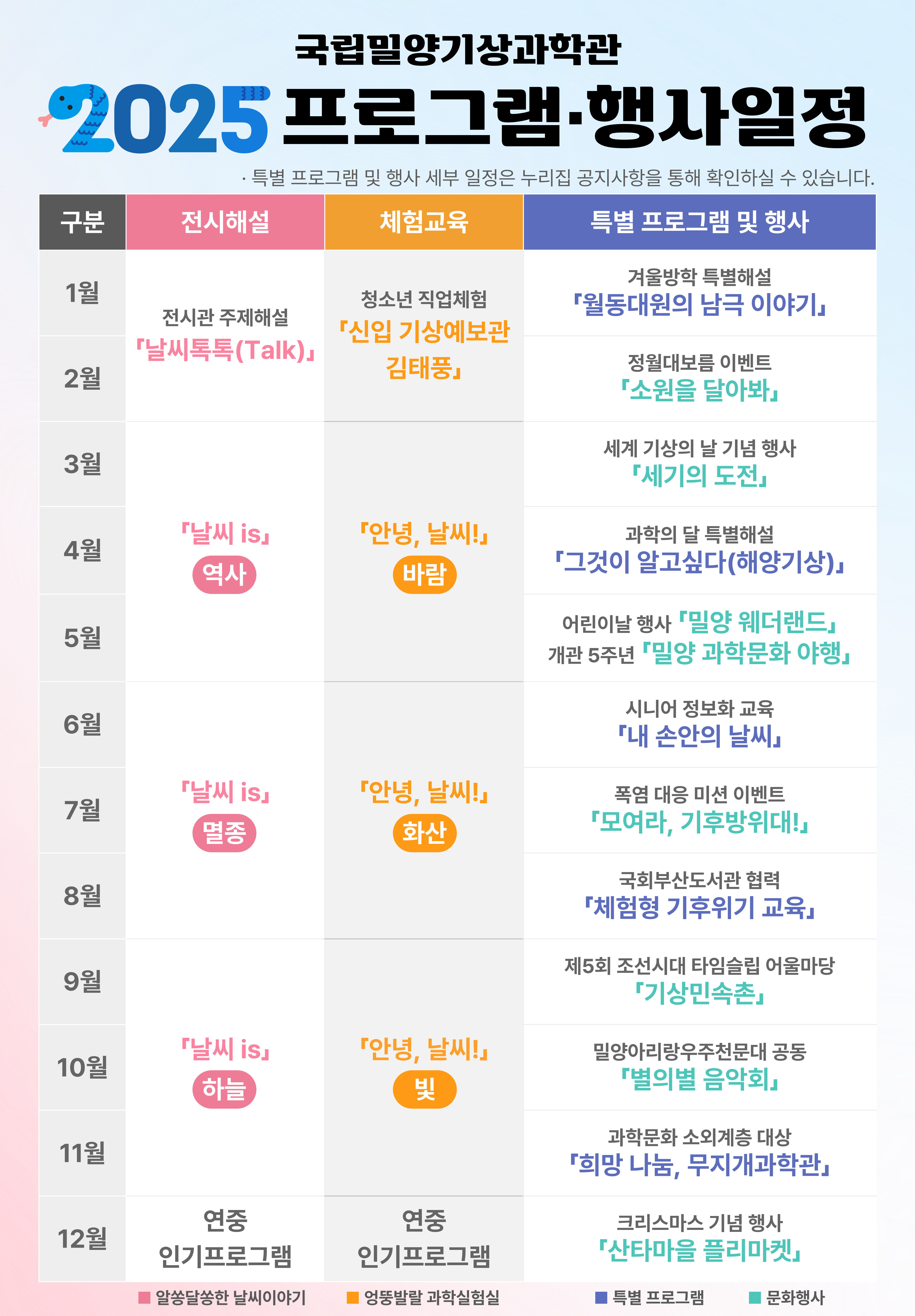 [국립밀양기상과학관] 2025년 프로그램 및 행사 일정