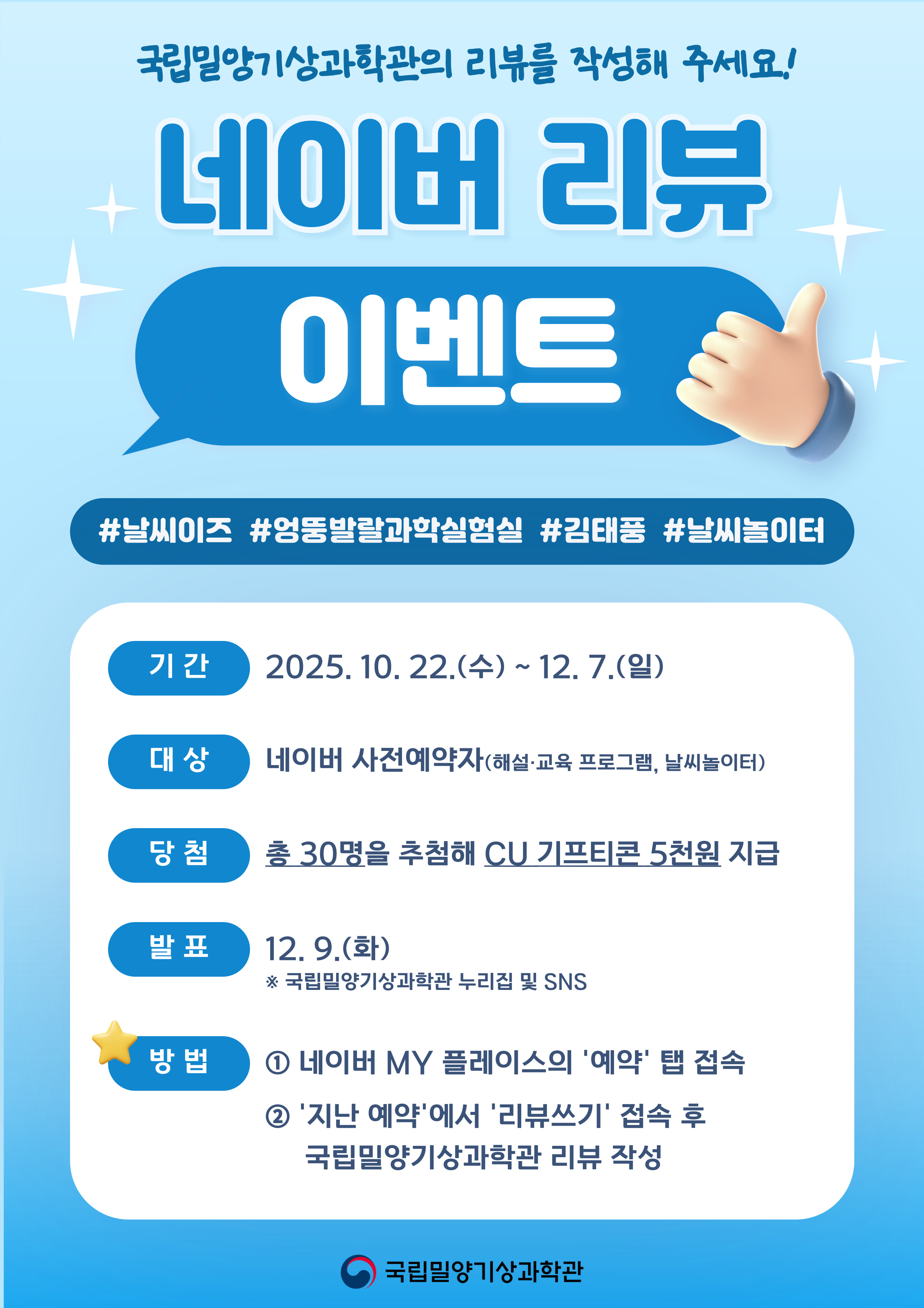 2025년 국립밀양기상과학관 리뷰 이벤트(10. 22. ~ 11. 20.)