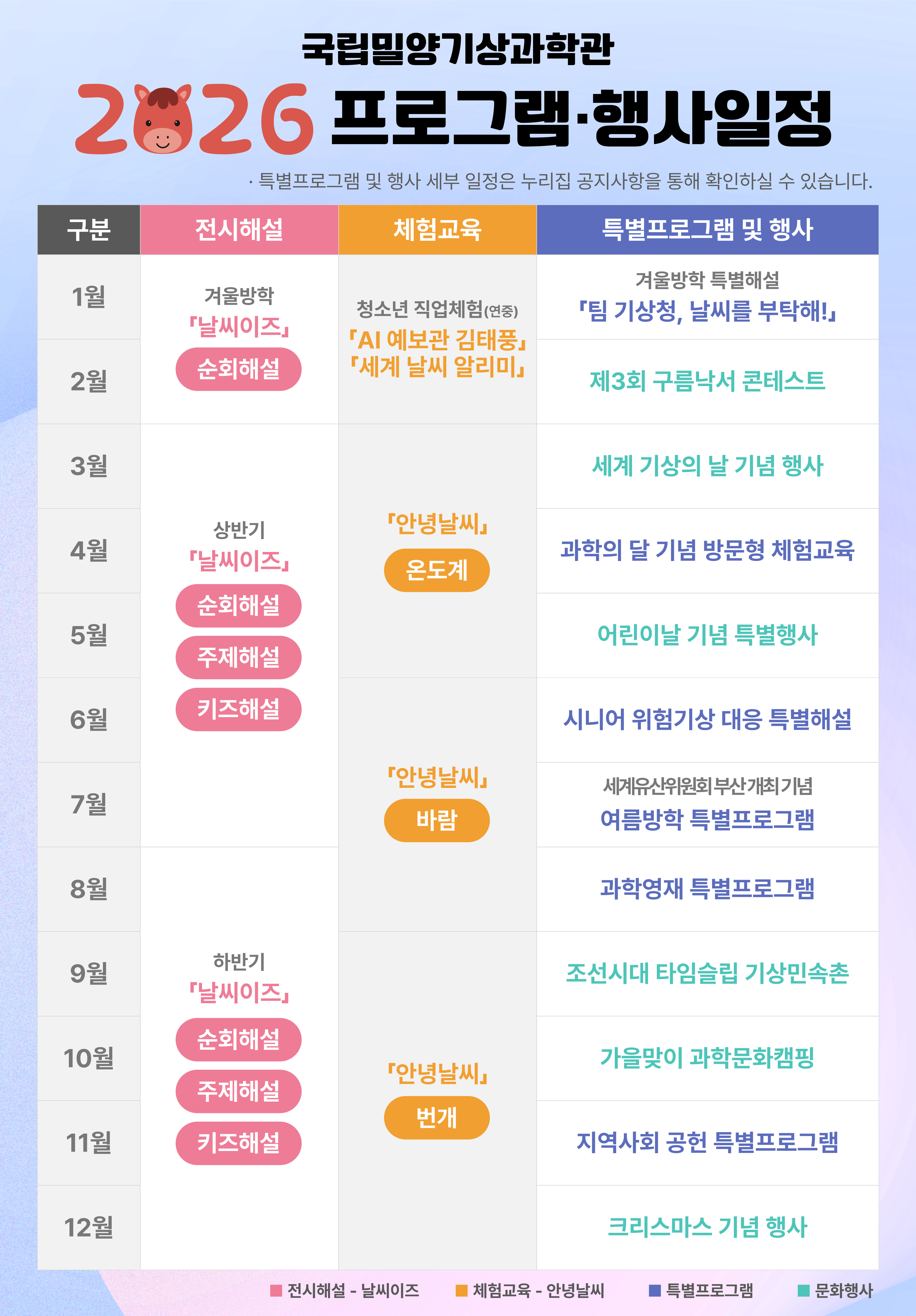 2026년 프로그램 및 행사 일정을 안내드리니 참고하시어 관람하시기 바랍니다.