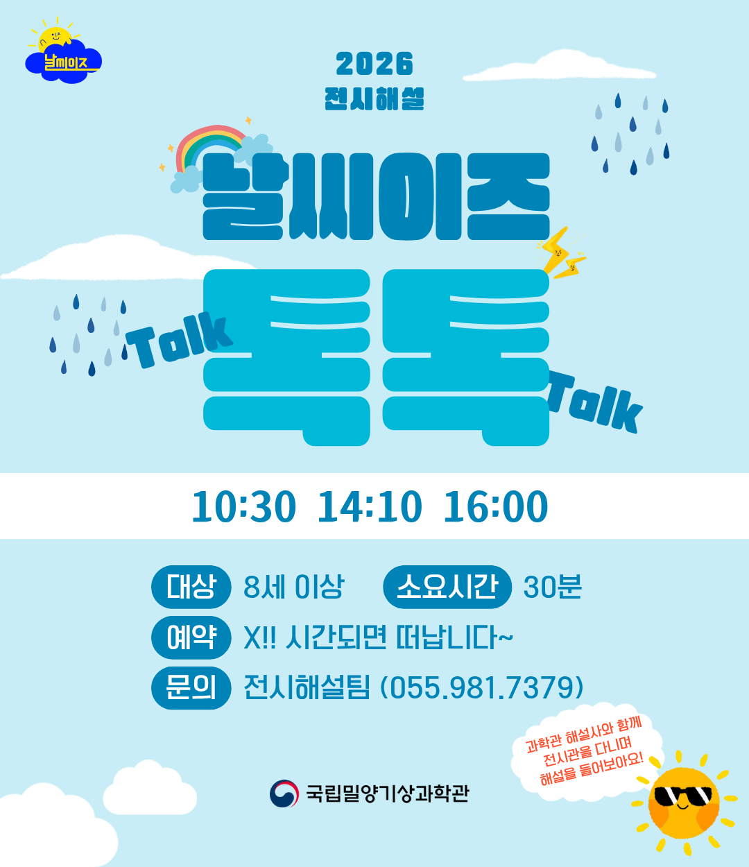 알쏭달쏭한 날씨 이야기를 과학해설사가 쉽고 재미있게 들려주는 국립밀양기상과학관 전문해설 브랜드입니다.