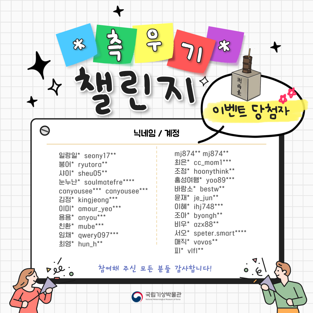 측우기 챌린지 이벤트 당첨자 발표