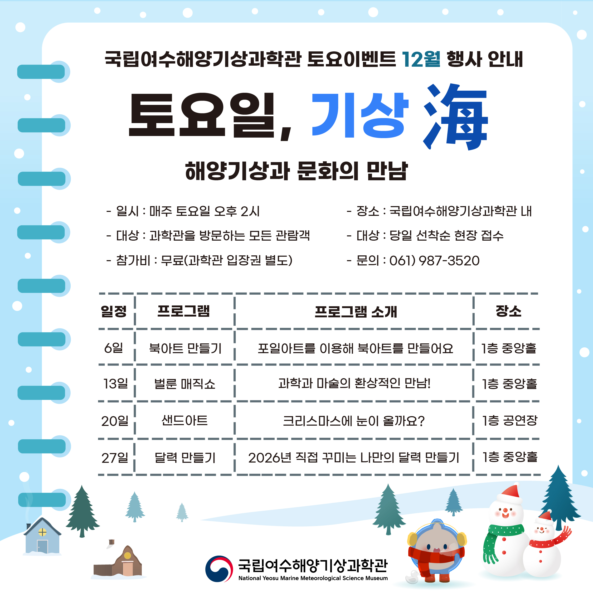 국립여수해양기상과학관에서 다양한 토요 이벤트와 함께하세요.