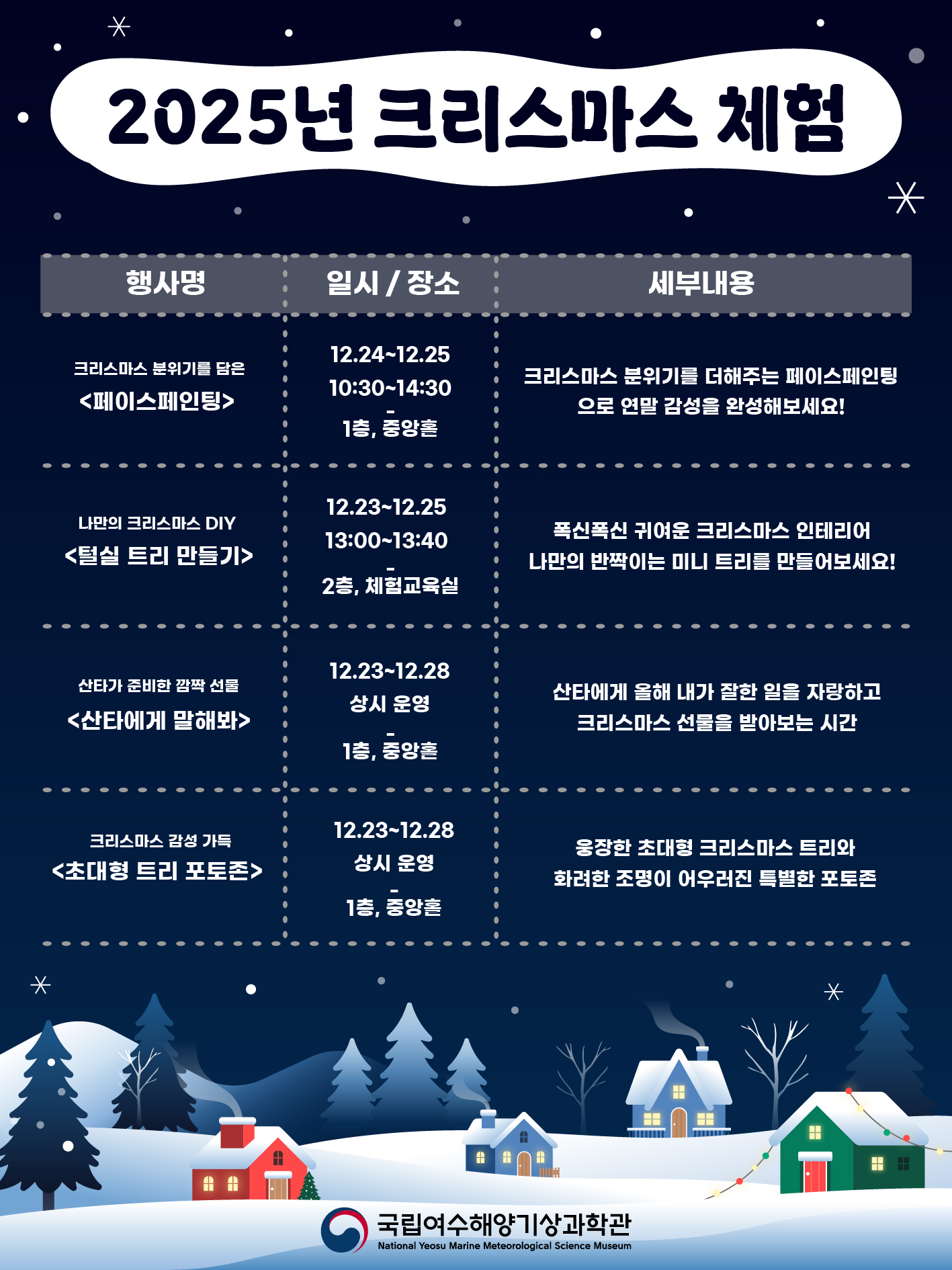 국립여수해양기상과학관 크리스마스 특별체험 프로그램 안내