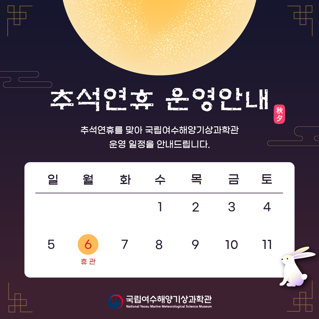 국립여수해양기상과학관에서 즐겁고 풍성한 한가위 보내시기 바랍니다.