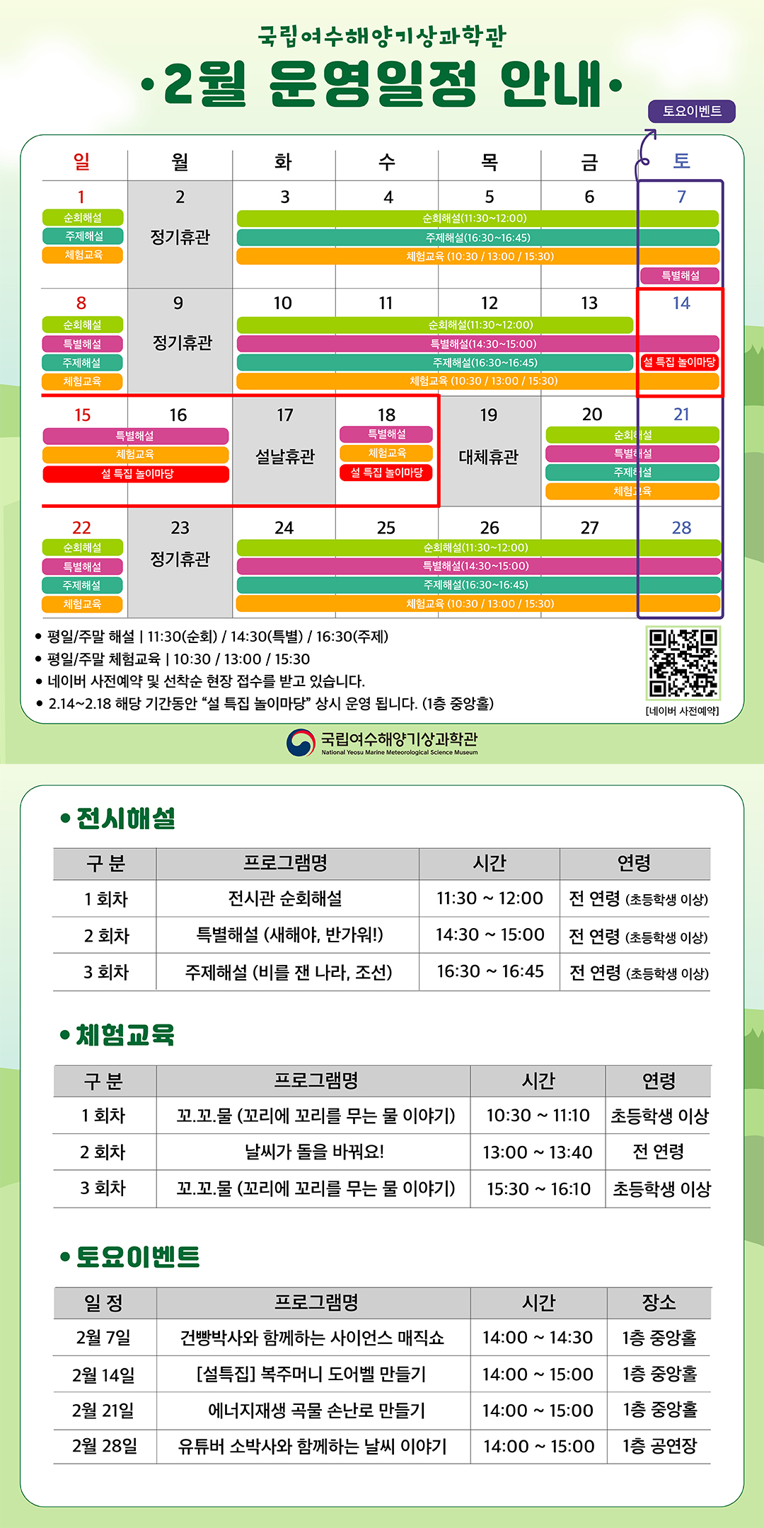 2월에도 다양한 체험과 교육 프로그램이 준비된 국립여수해양기상과학관으로 여러분을 초대합니다.